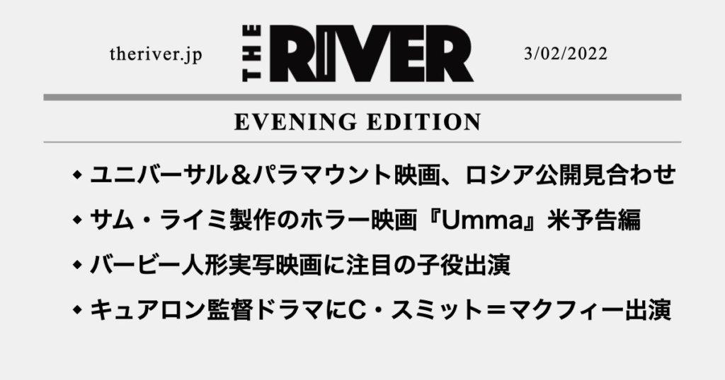 【夕刊】ロシアでユニバーサルとパラマウント映画公開見合わせ/サム・ライミ製作ホラー映画米予告編/バービー人形実写映画に気鋭の子役出演 ほか