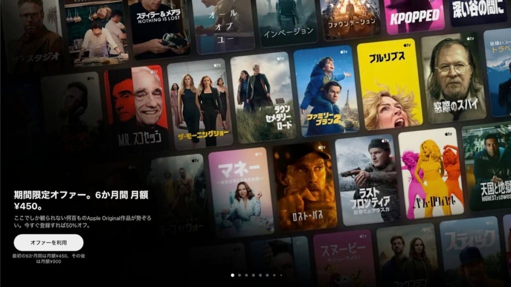 Apple TVは2025年12月2日(火)13:00までの期間限定で6か月間、50%オフとなる月額450円で楽しめるブラックフライデー限定オファーを展開中だ。