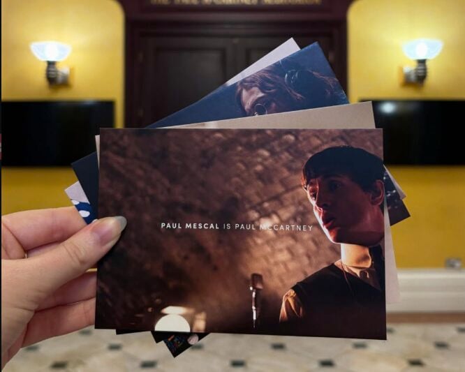 リバプール芸術学校(ポールがファウンダーの一人となった舞台芸術の高等教育機関)は公式Instagramアカウントにて「新たなビートルズの映画を宣伝するポストカードを限定で入手しました!校内に隠しているので、学生の皆さん探してくださいね」と4枚のポストカードの画像を投稿。眉毛の上で前髪を切り揃えたマッシュルームカットのポールが1番上で、残り3枚がチラリと見えている。