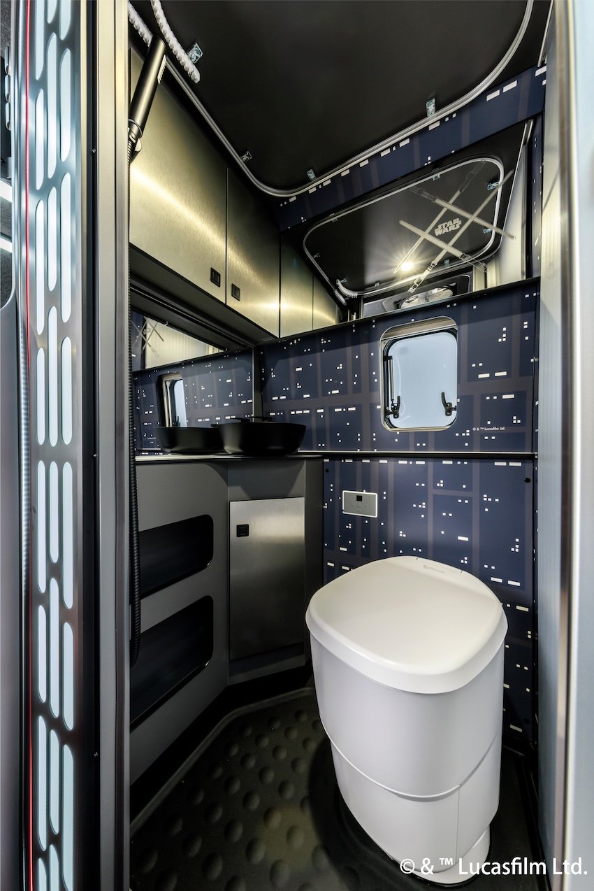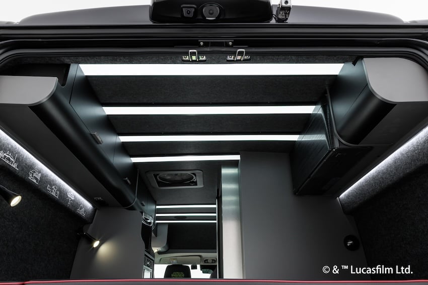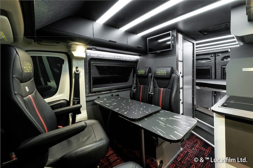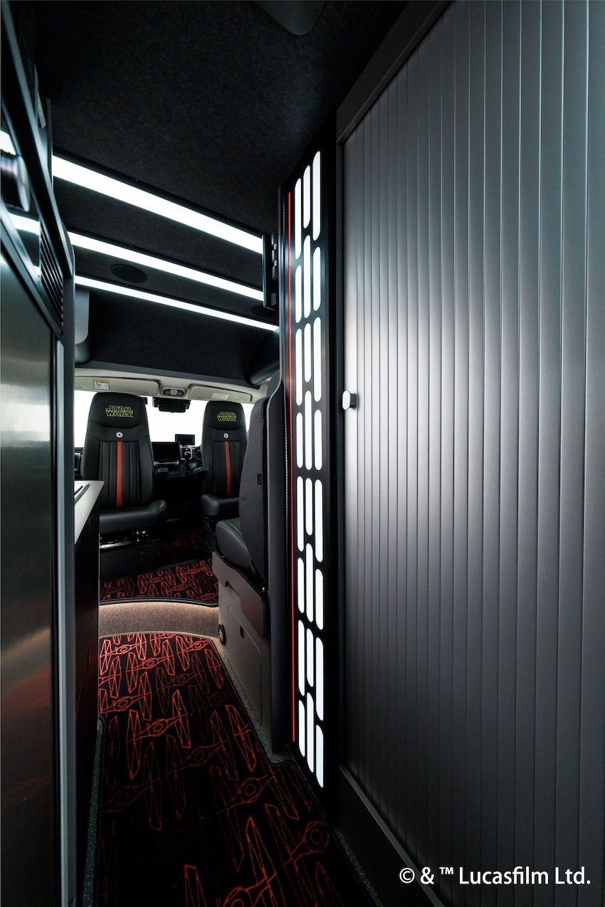キャンピングカーの内外装には、帝国の象徴「ダース・ベイダー」や、巨大な戦闘基地「デス・スター」を彷彿とさせる、帝国軍のダークで荘厳な世界観が細部にわたって表現された。