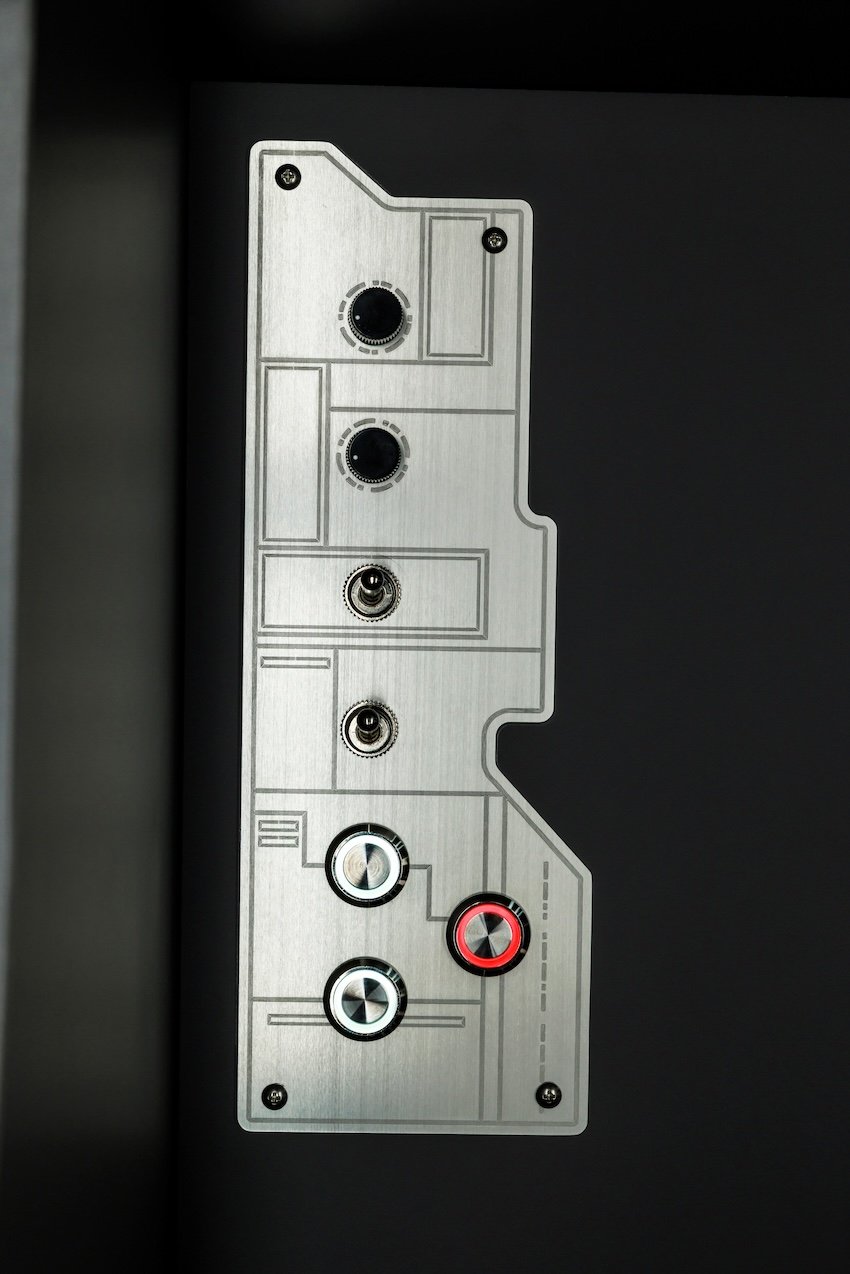 【スイッチパネル】車内の照明を司るスイッチパネルは、巨大戦闘基地デス・スターの管制室をイメージ。