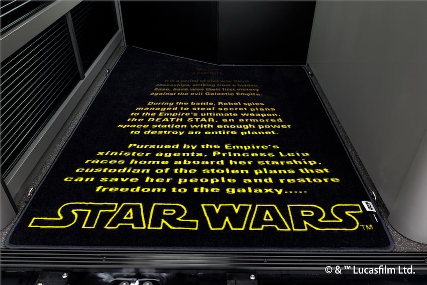 映画の冒頭で必ず表示される有名なフレーズ「A LONG TIME AGO IN A GALAXY FAR FAR AWAY」を、銀河標準語オーラベッシュで車内の壁面に刻印するなど、こだわりの特別装備満載。