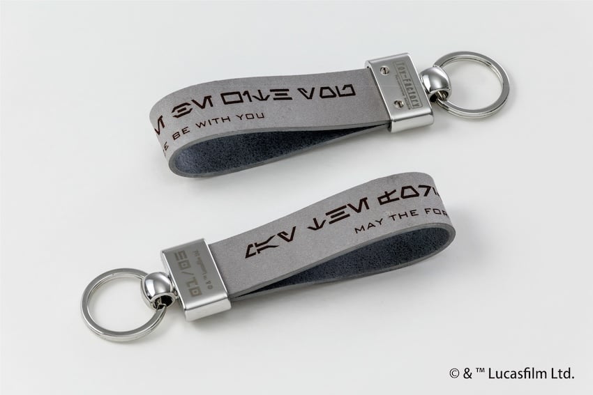 【キーホルダー】「フォースと共にあらんことを」の有名フレーズをオーラベッシュで刻んだ本革キーホルダー。限定シリアルナンバーとロゴを刻印した特別なアイテム。