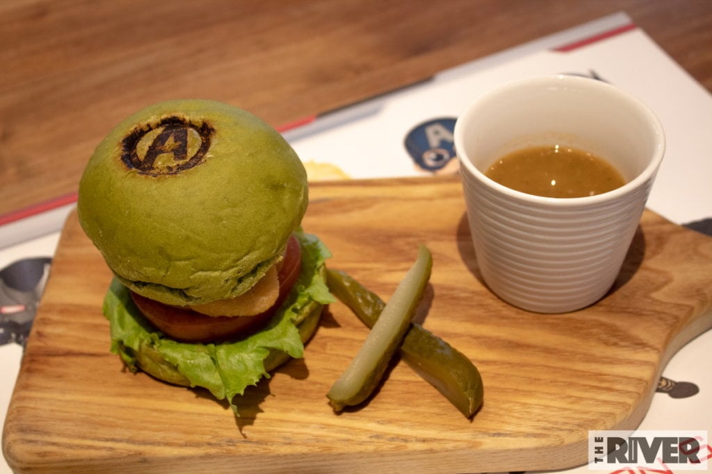 ストアに隣接する「Ones Cantine bio」は、『アベンジャーズ/エンドゲーム』をテーマにした限定カフェに変身。歴代「ムービー・マスターピース」が大量に並んだ、マーベル・ファンには夢のような空間で、映画をイメージしたバーガーなどのオリジナルメニューをいただくことができる。