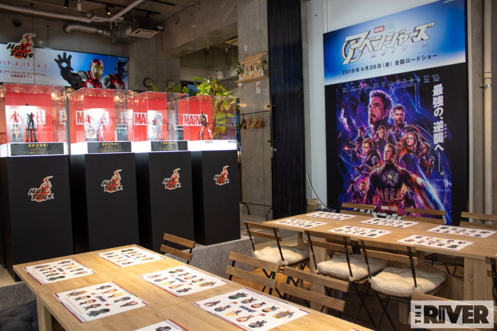カフェ内には『アベンジャーズ/エンドゲーム』のビジュアルも巨大に掲示。スパイダーマン、デッドプール、ガーディアンズ・オブ・ギャラクシーのピンボールも設置されている。