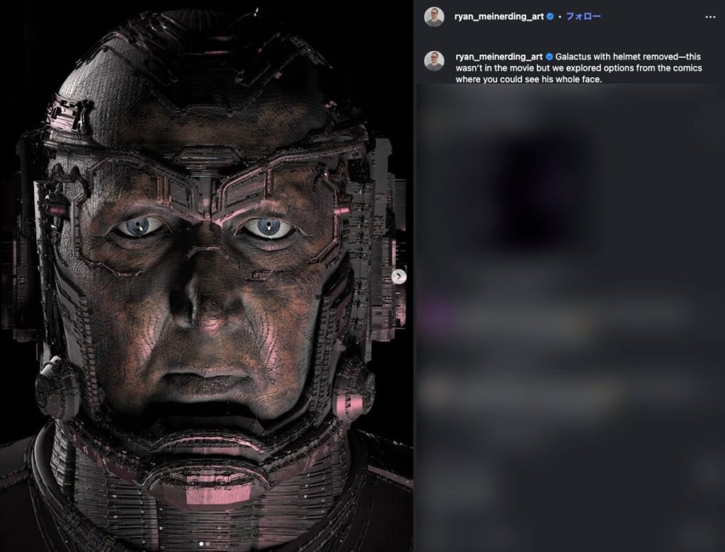 衝撃の画像が、マーベル・スタジオのビジュアル開発責任者であるライアン・メイナーディングより公開された。独特の形状のヘルメットを取り外した状態のギャラクタスの姿だ。
