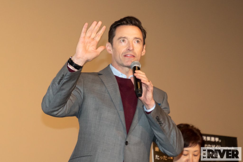ヒューは壇上、通訳が日本語訳を伝えている最中には会場の隅々までをにこやかに見渡しながら、あちこちで手を振るファンに笑顔で手を振り返した。客席で何かを見つけると指をさして嬉しそうに笑ったり、マイクを通さない生声で「ありがとうございます」の日本語を客席のほうぼうに投げ続ける。終始穏やかな空気に包まれた舞台挨拶となった。