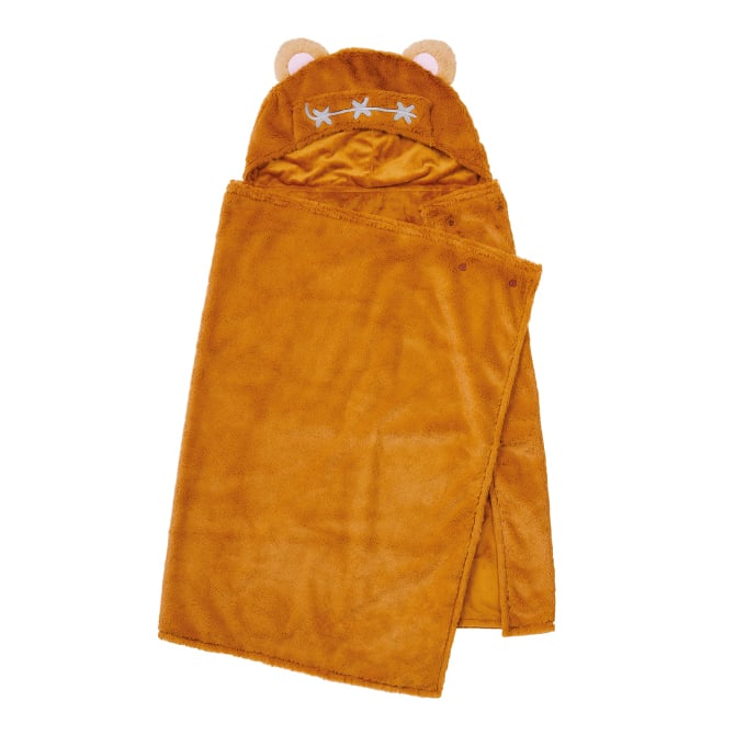 ウィケットのフードをかぶって、森の戦士になりきり!モフモフとしたやさしい肌触りが心地よい、ウィケットをイメージしたフード付きブランケット。羽織っても、包まっても楽しめる、特別感たっぷりの一枚です。