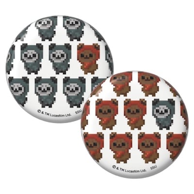さまざまなイウォークのイラストをデザインした、2個セットの缶バッジ。バッグや小物に付けて、気軽にイウォークの魅力を楽しめるアイテムです。