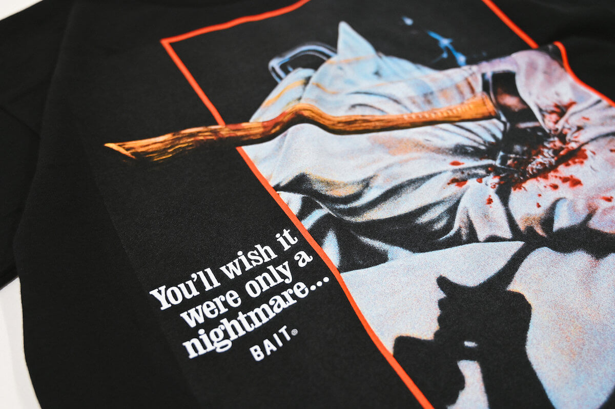 このたびのBAITから登場するカプセルコレクションは、これまでの作品の映画ポスターをはじめとする様々なアートワークが落とし込まれたデザイン。USA製Tシャツに加え、プレミアムコットンで仕上げられたヘビーウェイトのフーディなど、全3型でのラインナップとなる。