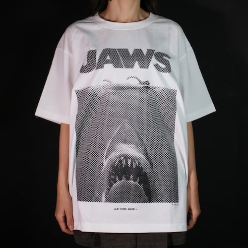 公開50年を経た今も、色褪せぬポスターは水中に潜むサメの恐怖を描いた極シンプルな背景。本コレクションは、作品とポスターアートに最大限の敬意を払い、極シンプルさを際立たせ商品化。70年代のアクセサリーを彷彿とさせる、シルバー925の指輪とネックレスの随所に技術とコンセプトとユーモアを潜ませています。ポスターアートのTシャツはハーフトーンドットで表現した。