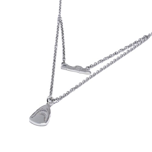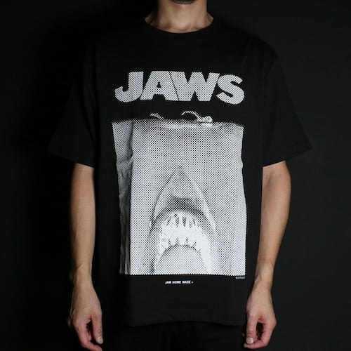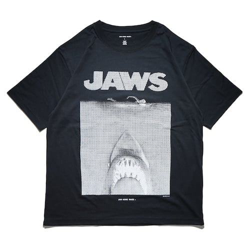 公開50年を経た今も、色褪せぬポスターは水中に潜むサメの恐怖を描いた極シンプルな背景。本コレクションは、作品とポスターアートに最大限の敬意を払い、極シンプルさを際立たせ商品化。70年代のアクセサリーを彷彿とさせる、シルバー925の指輪とネックレスの随所に技術とコンセプトとユーモアを潜ませています。ポスターアートのTシャツはハーフトーンドットで表現した。