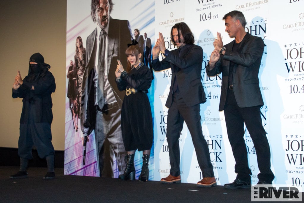 ゲストとして、本作の劇中で「にんじゃりばんばん」が流れる縁からきゃりーぱみゅぱみゅが登場。楽曲が流れるステージ上で、キアヌは手拍子と共にきゃりーを迎え入れた。きゃりーから花束を受け取る際には、彼女の身長までその大きな身体を折りたたむように深くお辞儀しながら受け取る。