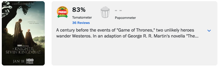 米レビューサイトのRotten Tomatoesより、大ヒットドラマ「ゲーム・オブ・スローンズ」の新スピンオフシリーズ「ナイト・オブ・ザ・セブン・キングダムズ」シーズン1のスコアが発表された。