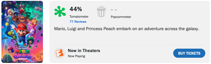 米レビューサイトのRotten Tomatoesより、映画『ザ・スーパーマリオギャラクシー・ムービー』のスコアが発表された。