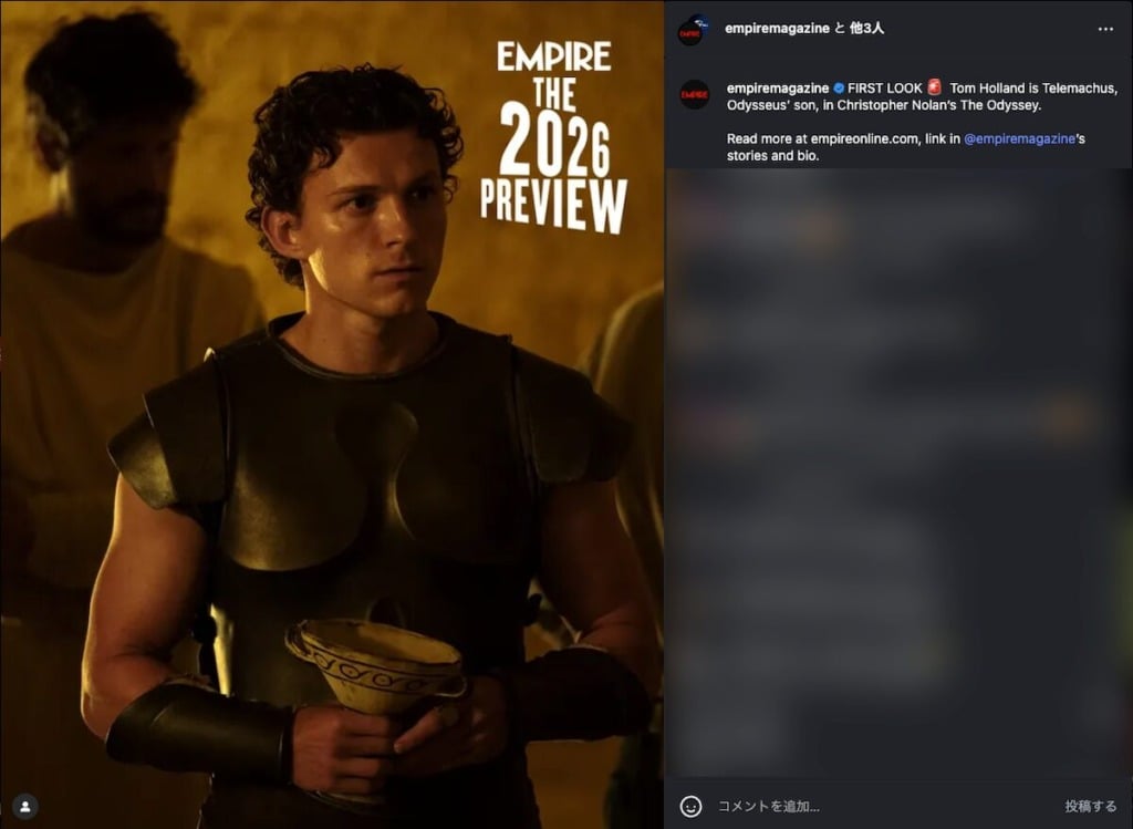 クリストファー・ノーラン監督最新作『オデュッセイア』より、トム・ホランドの劇中姿が英Empireを通じて初公開された。