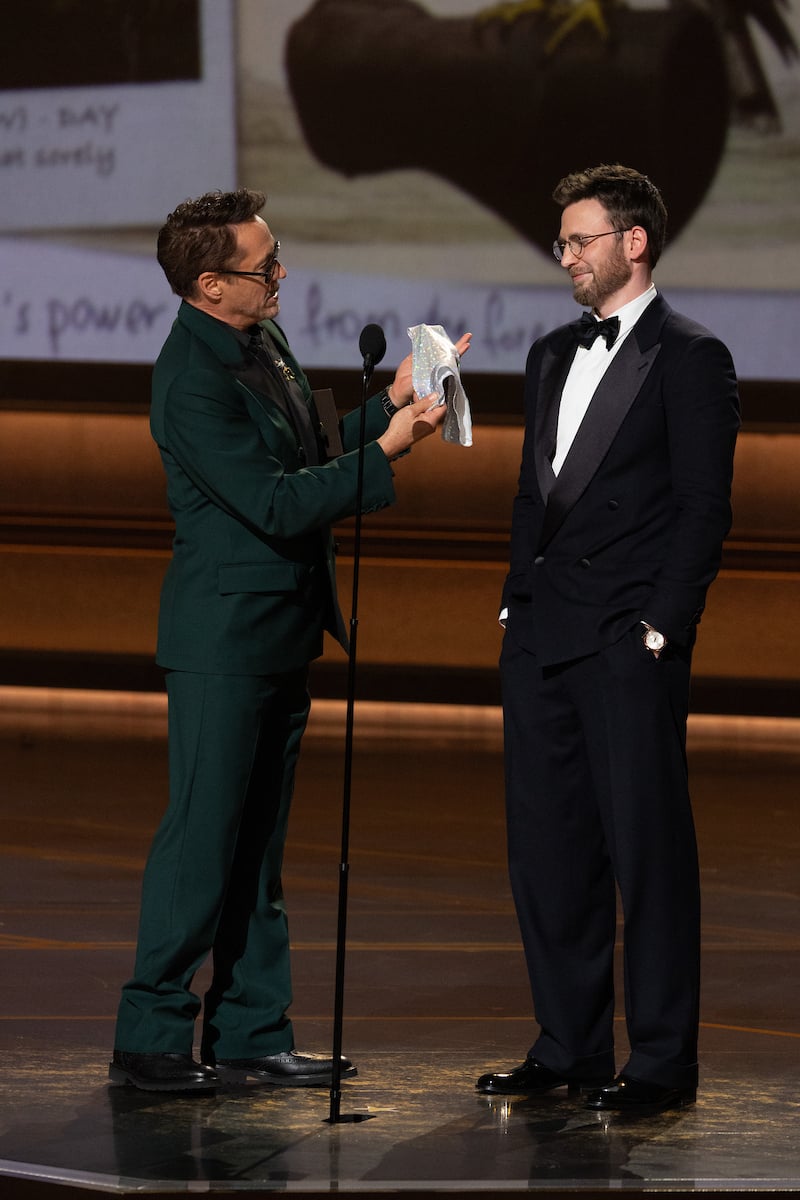 脚色賞と脚本賞のプレゼンターを務めた。ダウニー・Jr.は『アベンジャーズ/ドゥームズデイ』で演じる新たな悪役ドクター・ドゥームを思わせるダークグリーンの、エヴァンスはキャプテン・アメリカを彷彿とさせるダークネイビーのスーツ姿で現れた。