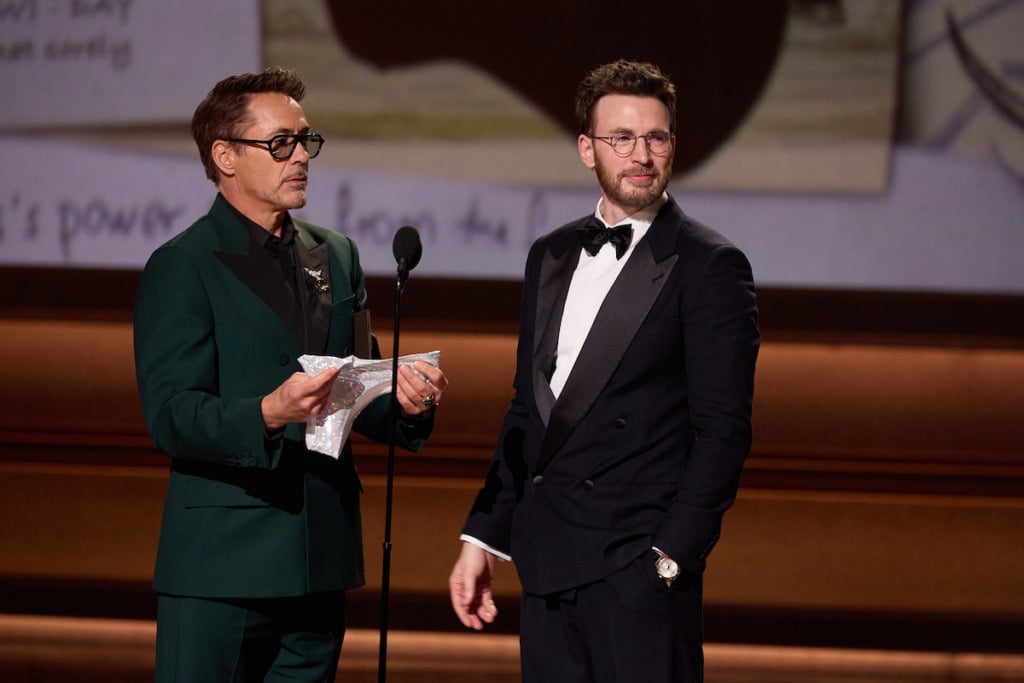 『アベンジャーズ』ロバート・ダウニー・Jr.とクリス・エヴァンスがアカデミー賞で再会、キラキラパンツをプレゼント なかよし