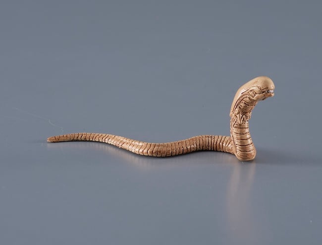 エイリアンの幼体であり第二形態の「チェストバスター」をリアル造形で立体化。さらに上部パーツをはめ替えて開閉どちらでも楽しめる「エッグ」がセットになったラインアップ。組み立て時の高さ:約42~49mm
