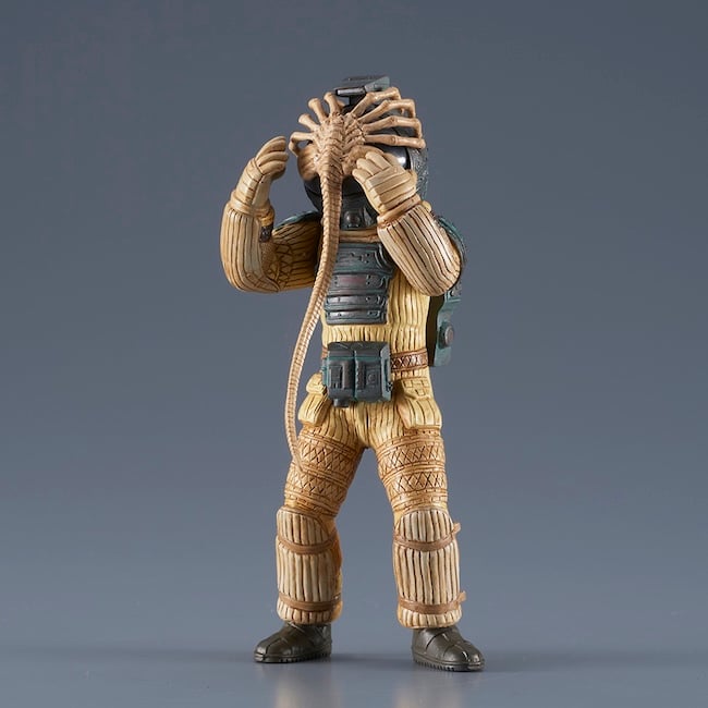 エイリアンの最初の被害者である「ケイン」が、エイリアンの第一形態「フェイスハガー」に襲われている姿をフィギュア化。組み立て時の高さ:約100mm