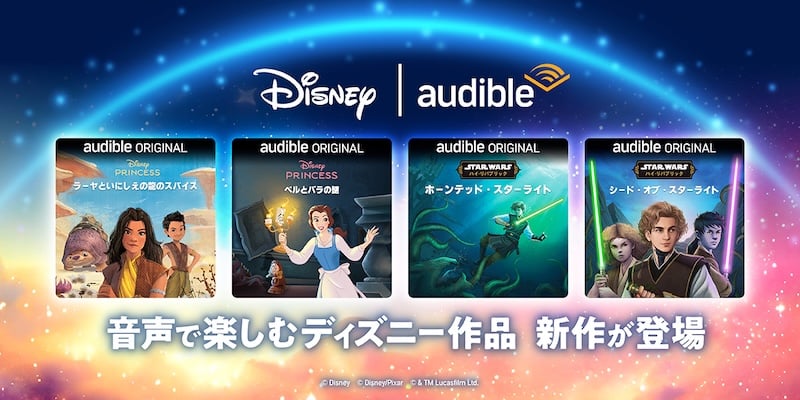 このほかAudibleオリジナルのディズニーオーディオブックからは、『ディズニープリンセス: ベルとバラの謎』『ディズニープリンセス:ラーヤといにしえの龍のスパイス』も同日リリースされている。お子様と過ごす移動時間や就寝前など、日常のひとときに、わくわくするディズニープリンセスの冒険や壮大なスター・ウォーズの世界に没入できる“聴く物語体験”。音声ならではの臨場感とともに広がる特別なディズニーの物語を堪能しよう。