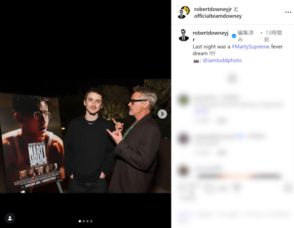 ロバート・ダウニー・Jr.がシャラメを大絶賛 ─ 『マーティ・シュプリーム』に「時代を代表する映画、世代を代表する演技だ」 これ以上ない絶賛