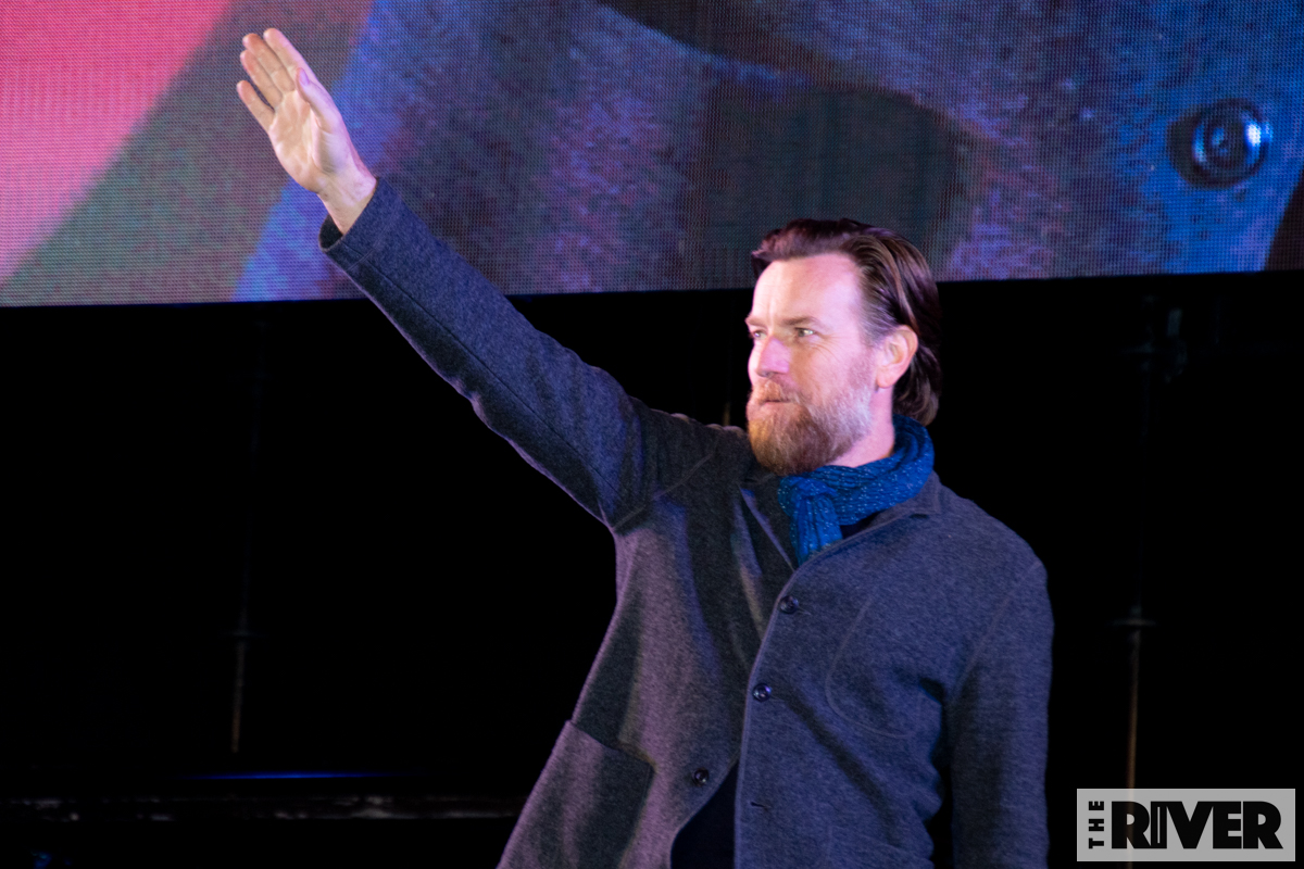 お待ちかねのユアン・マクレガーが登場すると、会場では一際大きな歓声と悲鳴。マクレガーはモリソン、ローガンとハグした後、会場にビッグな投げキッスを送った。