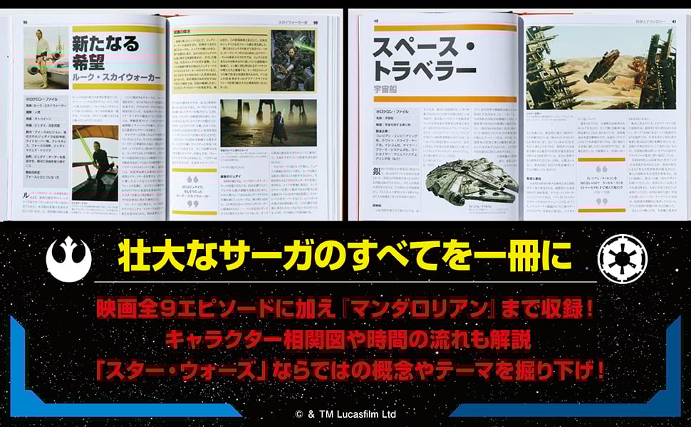 読み物としても充実の内容で、単なる事典にとどまらず、キャラクター相関図や時間の流れにまで言及。『スター・ウォーズ』ならではの概念やテーマを掘り下げた、初心者からコアなファンまで楽しめる解説文が見どころだ。