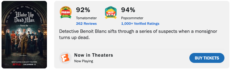 ライアン・ジョンソン監督シリーズ最新作『ナイブズ・アウト: ウェイク・アップ・デッドマン』は2025年12月12日にNetflixで独占配信開始を迎えると、米レビューサイトのRotten Tomatoesでは絶賛スタートを切った。
